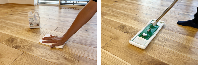日常的な水拭きに加えて、水拭き用の洗剤「オスモ ウォッシュアンドケアー」をご使用いただくこともおすすめしています。