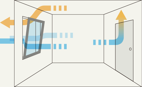 内開き状態にすれば、室内の空気を一気に入れ換えることができます。