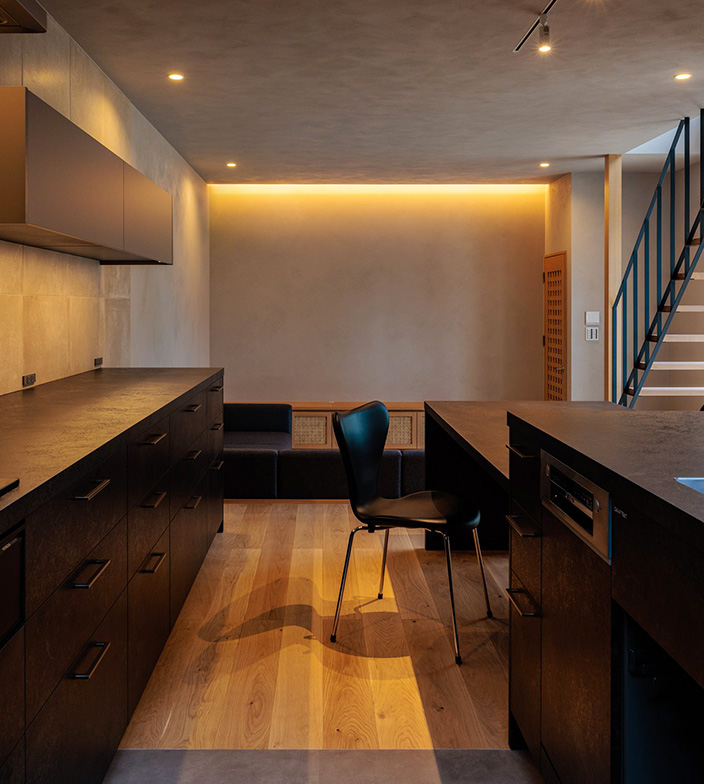 CASE 勝川の家 住宅 設計 森川洋平建築設計事務所( https://www.morikawa-a.com/work/) 使用製品 オスモフローリング #15030B D40(複合フローリング) ヨーロッパオークA 148mm幅 シルキー BACK 事例一覧 NEXT